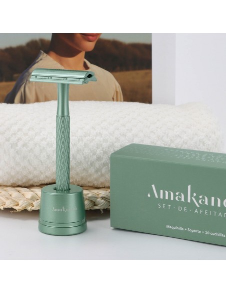 Maquinilla de afeitado corporal con soporte y 10 hojas de afeitado indicada para eliminar de forma segura el vello corporal. Plastic Free. Unisex