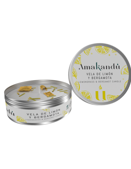 Vela de soja natural y vegana con aroma de Limón y Bergamota, esencia biodegradable y plantas. Velas perfumadas para regalo, aromaterápia, reducción del estrés, purificación, relajación y meditación - 170 gr